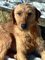 Hallo, ich bin Petra, eine sehr junge und sportliche Mischlingshündin. Mein Fell trage ich in kurz und glatt, in einem Creme-Rot-Ton. Als Hingucker habe ich zwei große Spitzohren, denen absolut gar nichts entgehen kann. Meinen Kopf ziert ein exakt gerader weißer Streifen, ausgehend von meiner weiß gerahmten Nase. Welche Rassen sich bei mir so verewigt haben, da kann man leider nur Vermutungen anstellen. Sportlich und athletisch müssen meine Vorfahren aber schon gewesen sein. Ich bin vom Verhalten noch ein typischer Junghund: Neugierig, verspielt und eigentlich immer in Bewegung. Leider habe ich noch nicht all zu viel von der Welt der Zweibeiner kennen gelernt, daß Erlernen des Hunde 1X1 steht gerade ganz oben auf meiner Trainingsliste. Klug und aufmerksam wie ich bin sollte das aber schnell erledigt sein, vielleicht mit dir an meiner Seite sogar noch ein bißchen schneller.