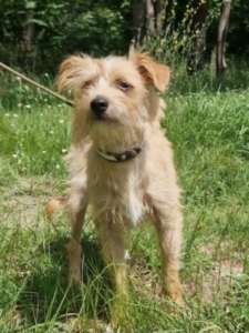 Hallo ihr da draußen! Ich bin Holly, ein kleines Hundemädchen von etwa 7–8 Monaten – und mit meinen zarten 5,5 kg bleibe ich klein genug, um perfekt in dein Herz (und auf deinen Schoß) zu passen. … also wie gemacht zum Kuscheln, Mitnehmen, Liebhaben und Nie-wieder-hergeben… Optisch bringe ich übrigens mein ganz eigenes Styling mit: Ich trage eine freche Strubbelfrisur in verschiedenen Blondtönen – mal wuschelig, mal wild, aber immer bezaubernd (sagen zumindest die Zweibeiner hier )… Dazu habe ich süße braune Augen mit extra langen Wimpern, ein kleines schwarzes Nasengummi und herrlich knuddelige Schlappohren, die beim Rennen lustig mitwackeln… Kurz gesagt: Ich sehe aus wie ein kleiner Glücksbringer auf vier Pfoten! Charakterlich bin ich eine richtig liebe, freundliche und menschenbezogene kleine Maus… Menschen finde ich einfach großartig! Am allerliebsten bin ich ganz nah bei dir – auf dem Schoß, neben dir auf dem Sofa oder eingerollt in einer weichen Decke… Kuscheln ist nämlich meine absolute Superkraft… Mit anderen Hunden verstehe ich mich prima – ich spiele freundlich und bin überhaupt nicht zickig… Und stell dir vor: Katzen finde ich auch total okay! Ich bin also bestens geeignet für ein Zuhause mit schon vorhandenen Fellnasen… Ich bin noch jung und möchte natürlich noch ganz viel lernen – aber ich bin auch neugierig, schlau und habe richtig Lust, alles richtig zu machen… Hauptsache, ich darf dabei sein und bekomme zwischendurch eine Streicheleinheit (oder zwölf)… Naja und weil ja das an der Leine laufen auch gekonnt sein will, üben wir das hier natürlich schon fleißig…